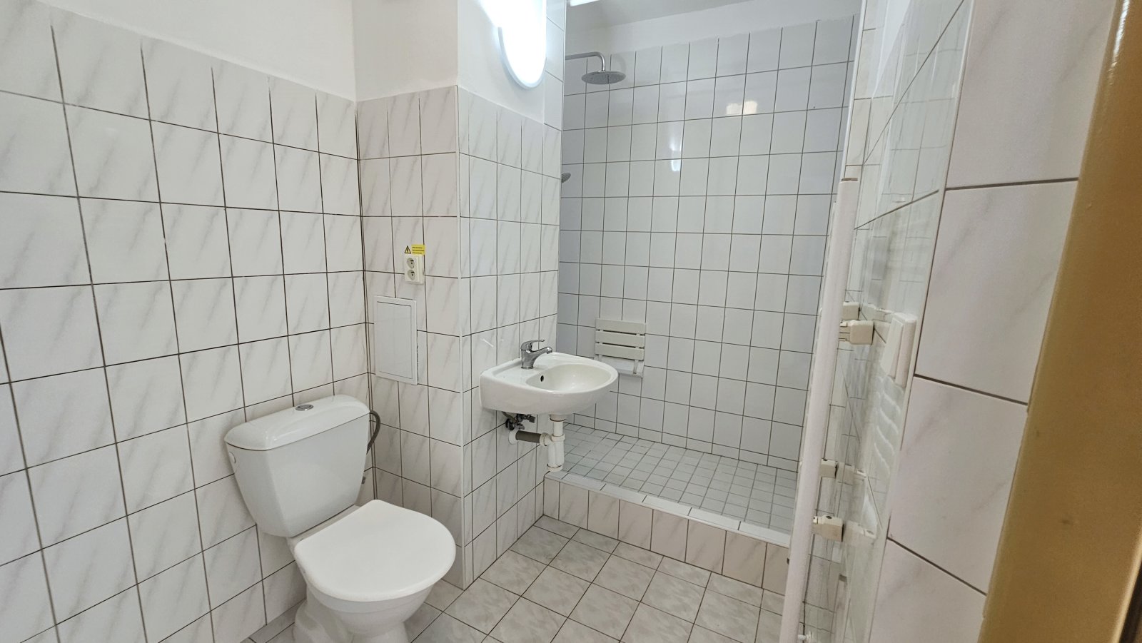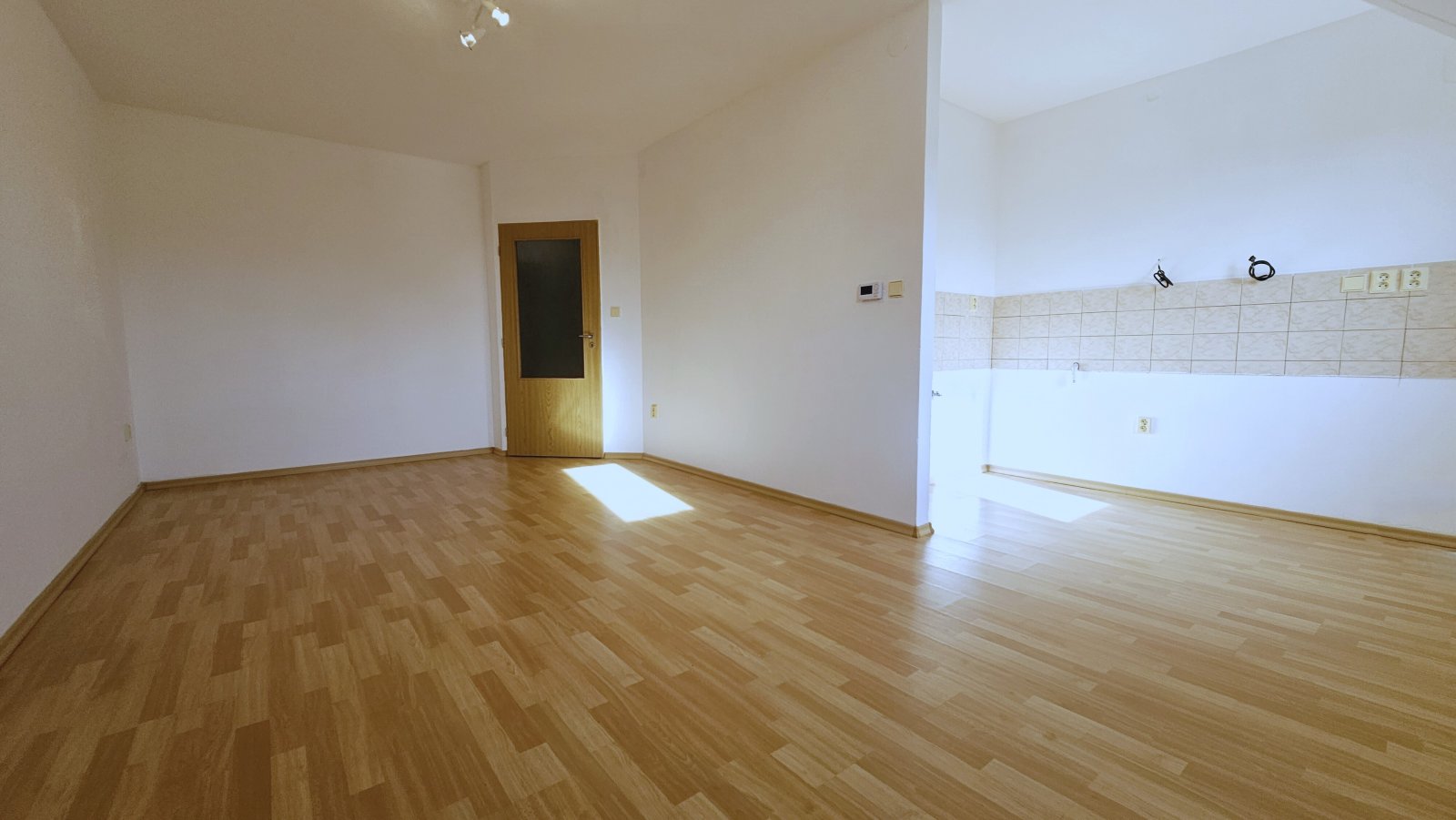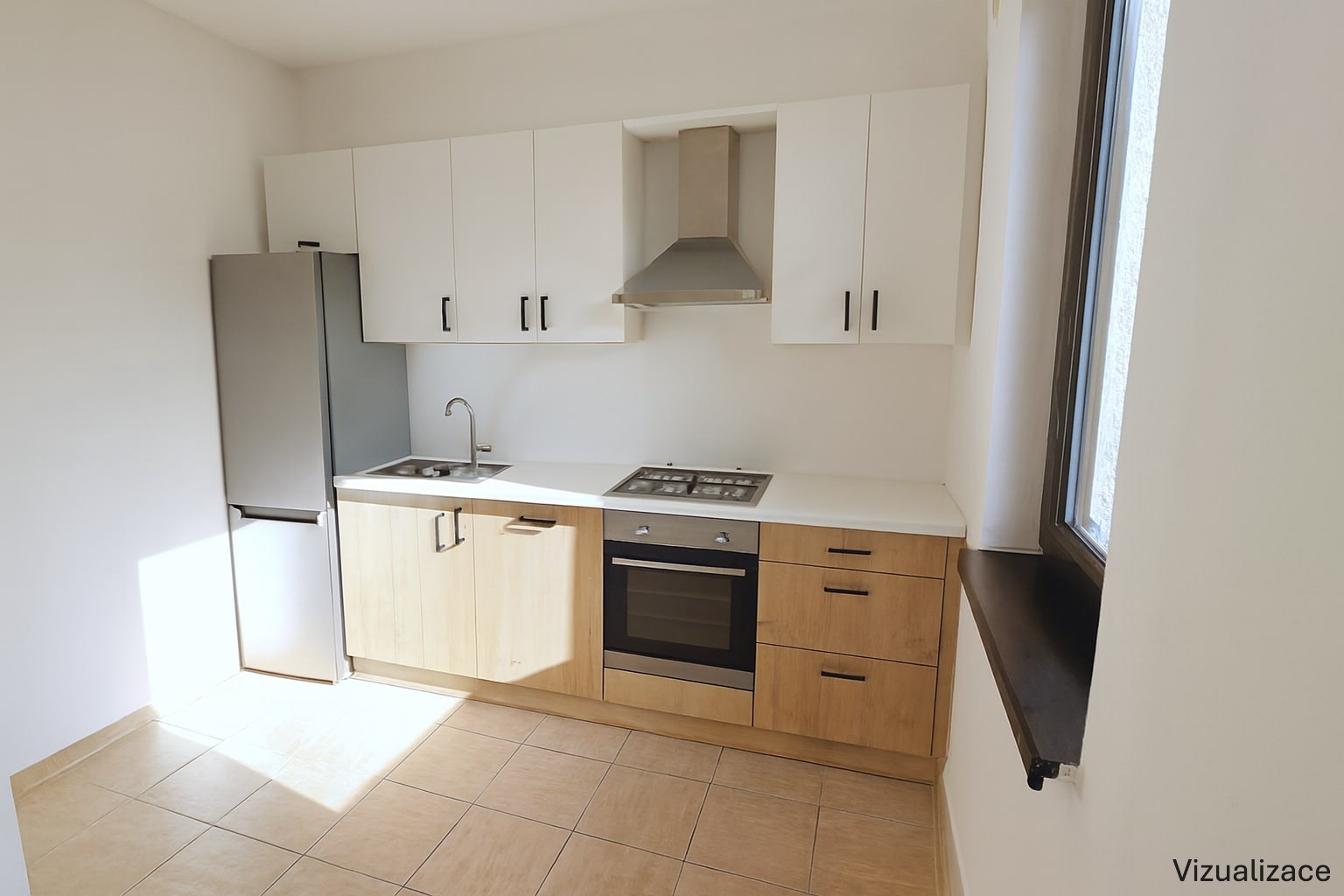 Bytová jednotka v přízemí domu má velikost cca 55 m2, je o dispozici 2+kk, francouzské okno na zahradu, koupelna se sprchovým koutem, komora.