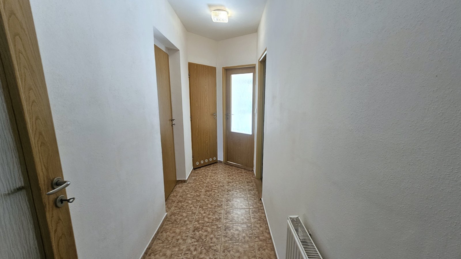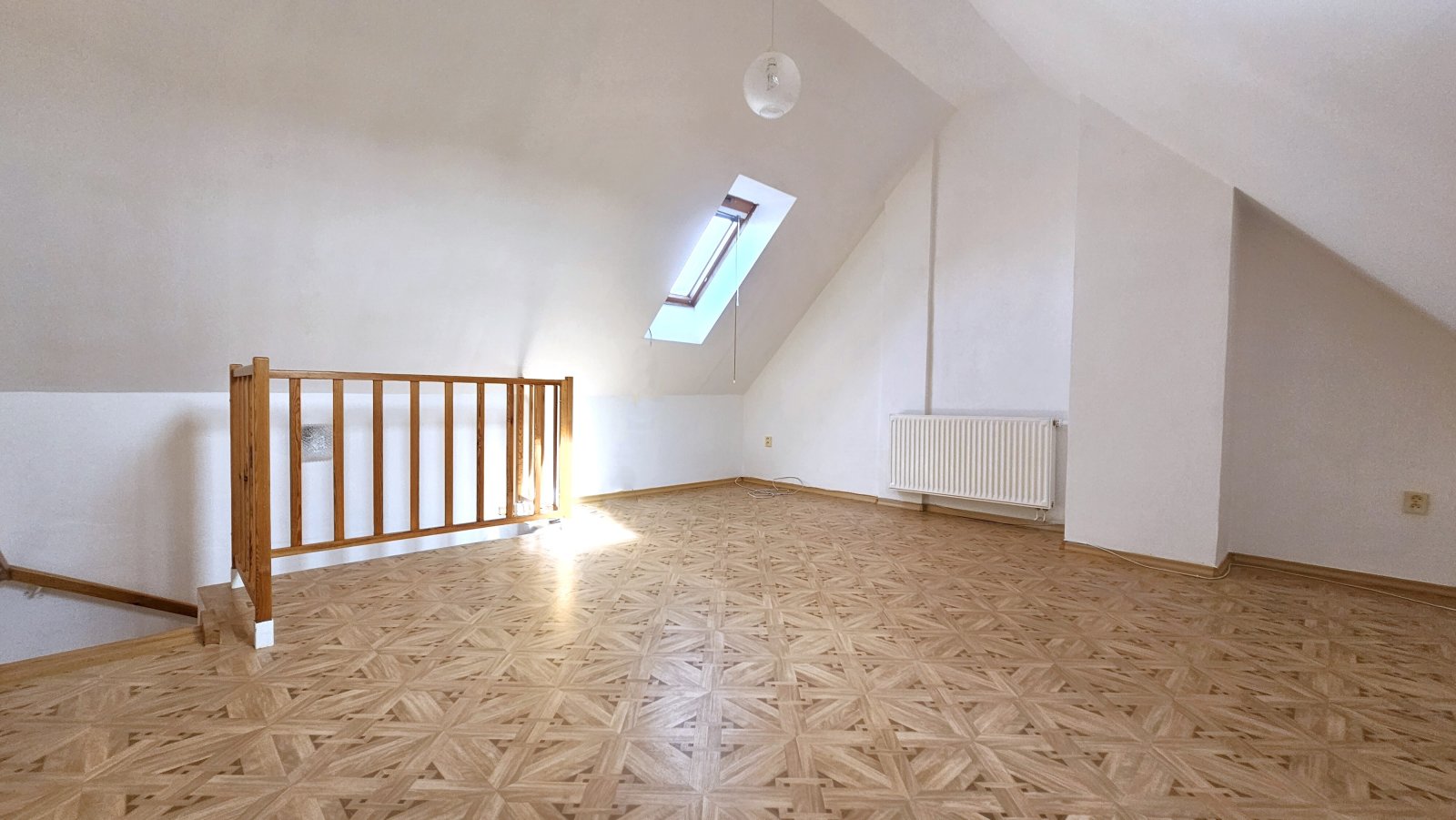 Bytová jednotka v patře má velikost cca 70 m2 je o dispozici 3+kk, přičemž jeden z pokojů je v mezonetu, koupelna s vanou, komora.